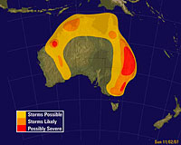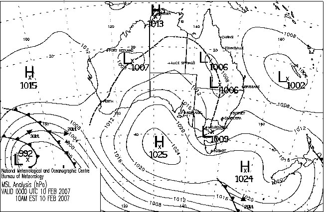 Friday night saw storms develop over the South East parts of the state including Sale. More storms developed in East Gippsland and just offshore near Wonthaggi on Saturday morning, as seen in this satellite image. Courtesy of Brisbane Storm Chasers and the NPMOC (Yokosuka). The MSL Analysis courtesy BoM.