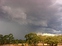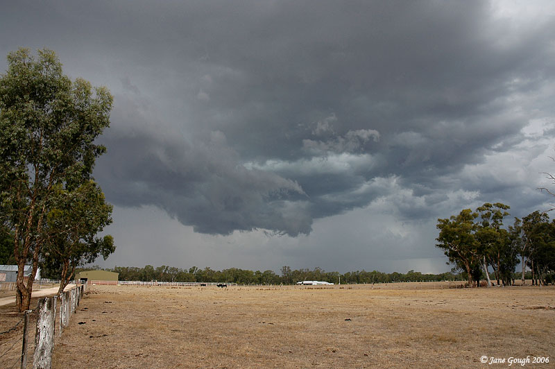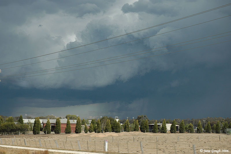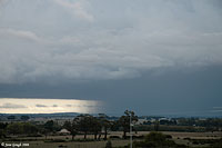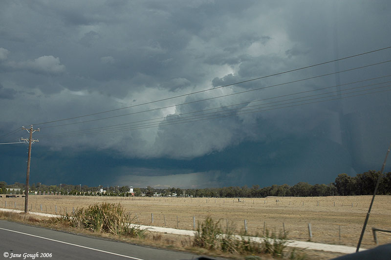 The following 3 images were taken by Rik Pool from Strathfieldsaye between 1:58 and 2:05pm, showing the structure and rain shaft of the cell we encountered the above hail from, and the one shown on radar.