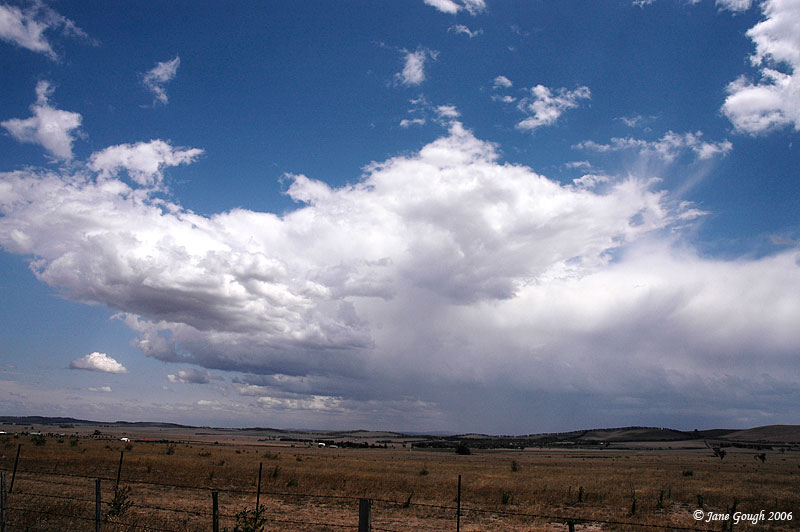 At 1:40pm, we stopped in Kilmore to fill up the car and noticed the roads were slightly damp from the previous cell, and also fresh updrafts on the Northern side of the Macedon cell. They were quite pulsy though, and no sooner had one tower gone up that a few minutes later it had lost it's crispy defined shape and flattened out. It certainly kept on trying though!