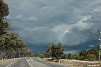 We decided to push on North up the Calder FWY to try and locate a vantage point to survey the area and see what was around. That proved more difficult than we first anticipated, with trees and hills constantly in our way! We finally found a clearing just to the south of Bendigo at 3pm and noticed a cell to the west that had been through the area. The second image is the same cell in the distance with the anvil of the next approaching storm, which was the catch of the day!