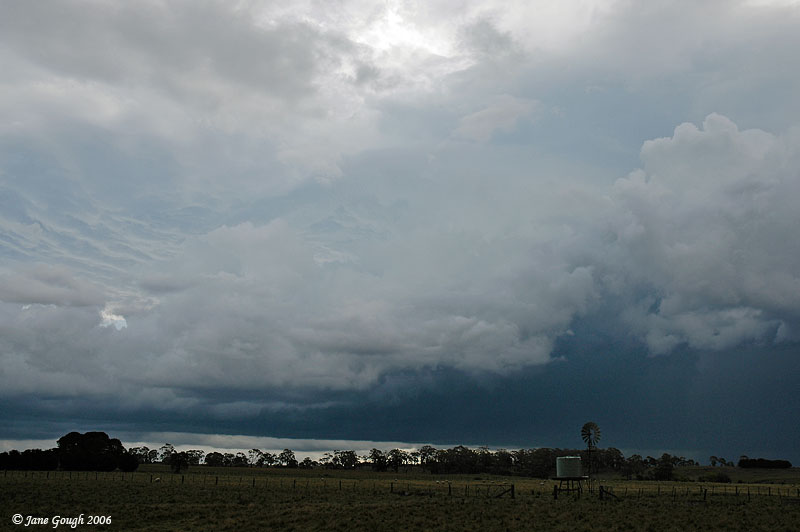 As the storms retreated towards the East, we stopped off at the Lancefield turn off of the Calder FWY at 6:00pm to gain a better view of the back end and the rain shaft.