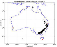 Storms and heavy rain continued throughout the day, and into the night. I was woken by distant rumbles at 4am from a cell which passed near Bendigo, and again at 6am from passing storms near Pakenham and Cranbourne. Up until 9 am on Sunday morning, Wilsons Prom ended up with 50mm, Mallacoota 44mm, Bairnsdale 47mm, East Sale 12mm and Orbost 15mm. I recieved 1mm from a passing shower!